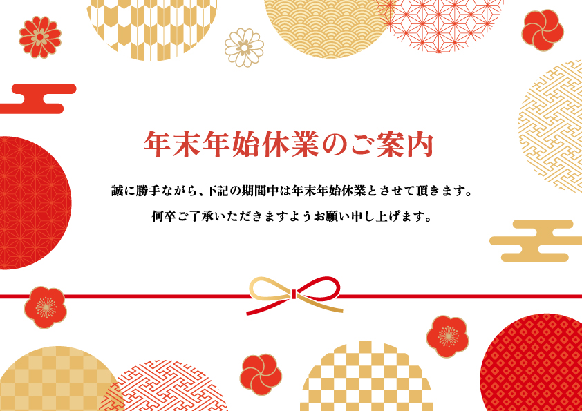 年末年始休業のお知らせ 平素は格別のご高配を賜り、誠にありがとうございます。 表題の件につきまして、弊社の年末年始の休業期間を下記のとおりご案内申し上げます。 ■ 事務所の休業期間 2025年12月26日(金)~ 2026年1月4日(日)※ 1月5日(月)より通常営業 を開始いたします。 ■ オンラ... 続きを読む