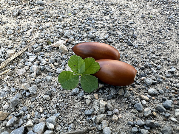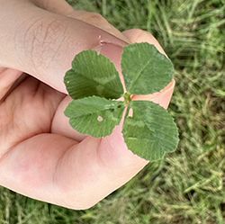 私がどんぐりを磨いている間、娘は今度は「四つ葉のクローバーを探す」と言い出し、